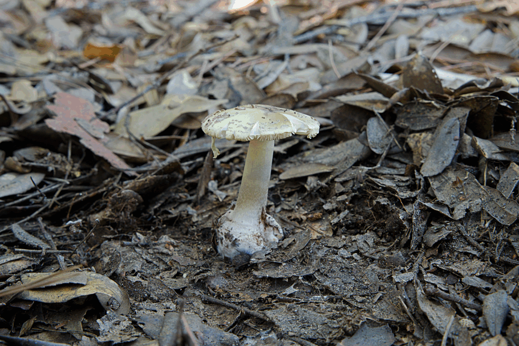 その後も山道を戻りつつ周囲を見ながら移動すると、やっと途中の道脇にキノコがあったので撮影。この時期なのにまだテングタケ類が出ているという事は、気温が時期の割にやや高いのかもしれない。